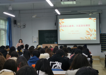 11月27日,羊山新区基础教育教学研究室艺术学科教研员王庆庆老师应邀来bat365开展题为《聚焦核心素养,立足音乐课堂》的讲座。bat365周骏老师及18级全体学生参加了此次讲座。