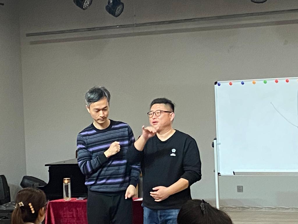 在本次授课中,陈教授为学员们从节奏速率的变化开始展开,通过节奏练习来提升学员的专注力。之后通过简单的挥拍手势来指导学员在指挥过程中应注意的问题。陈新宇教授还专门针对每个学员的问题做出了解答,让学员们的指挥能力得到了有效的提高,下午的授课过程中陈教授以《春天在哪里》为题为学员讲述纯律的概念,让学员们更高的区分合唱中和固定旋律的区别,带领学员演唱作品《黄水谣》得到了学员的一致好评。