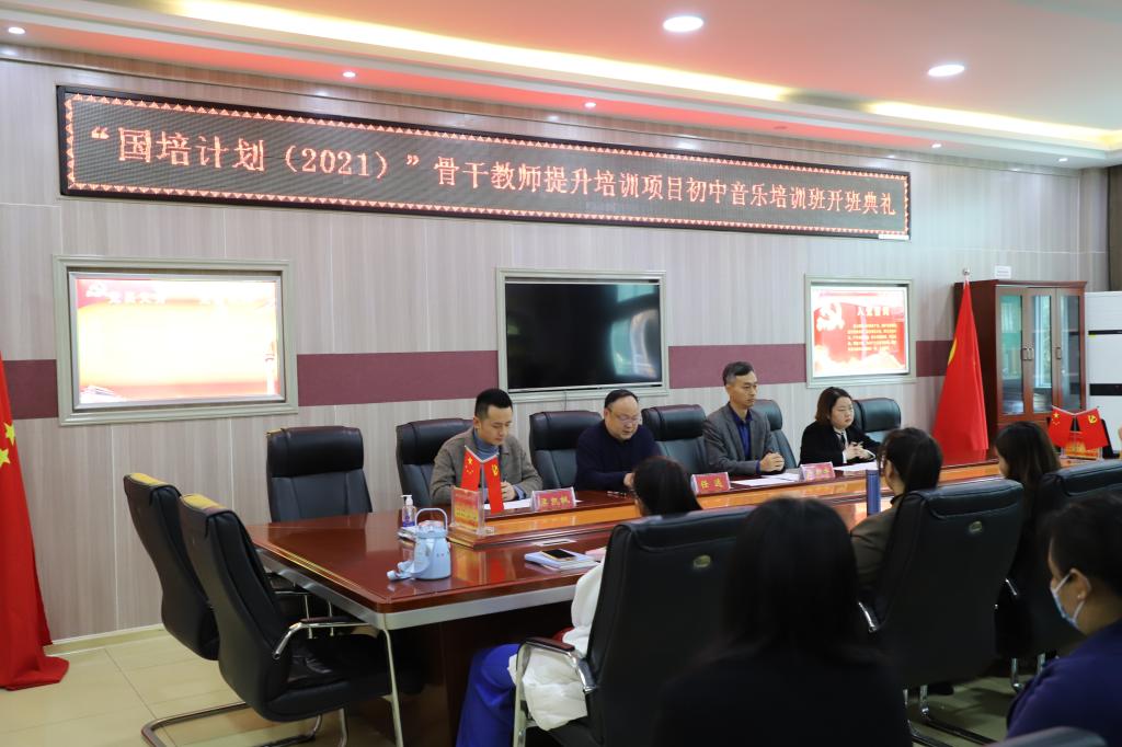 3月11日上午,“国培计划(2021)”骨干教师培训项目初中音乐培训班开班典礼在艺术楼三楼会议室举行。bat365在线中国官网登录入口院长陈新宇、副院长任远、党委副书记雷玲、专业班主任梁凯枫博士出席。来自全省各地的40余名初中音乐骨干教师参加开班仪式。开班仪式由任远主持。