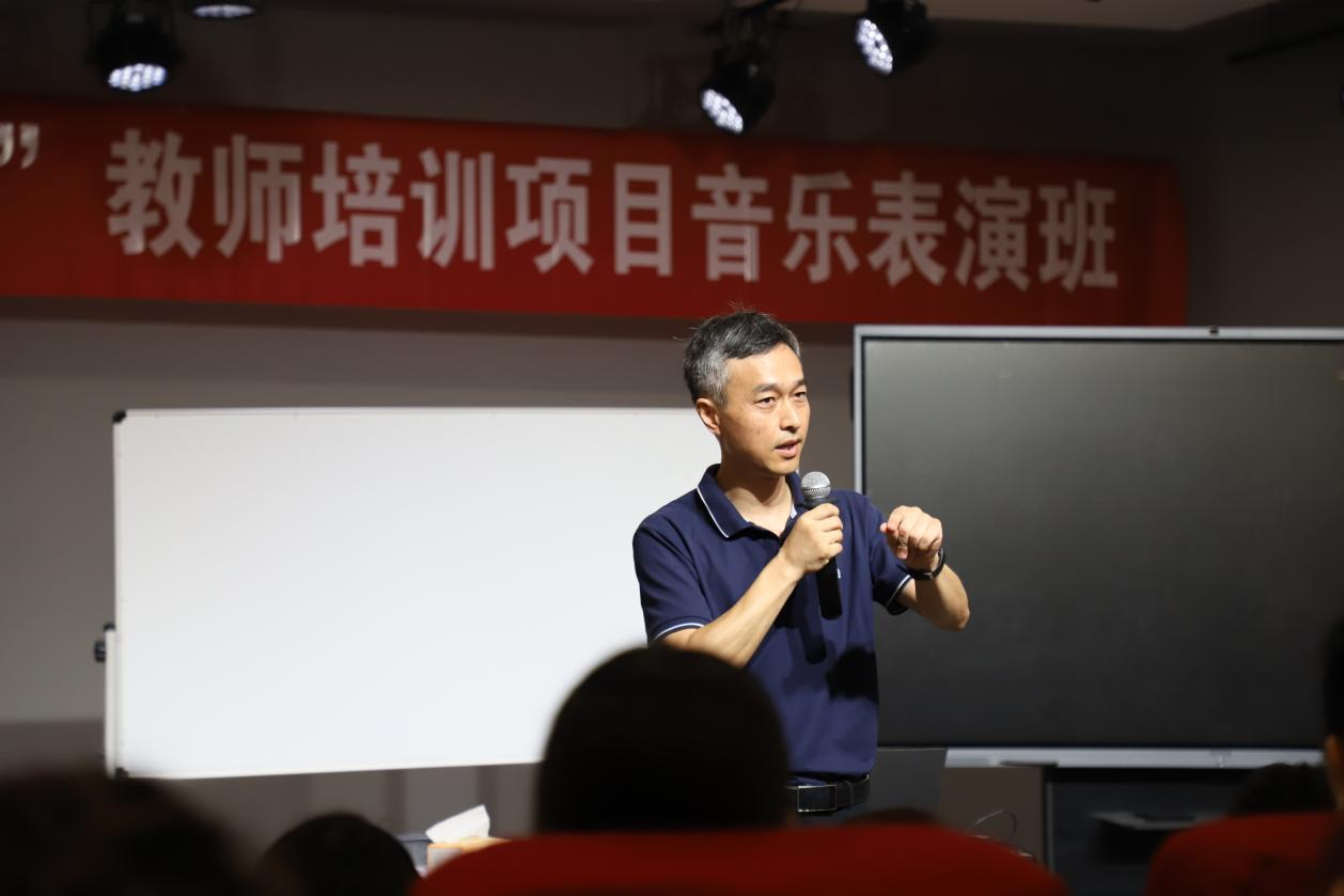 7月11日,bat365在线中国官网登录入口院长陈新宇教授在八音讲堂为120余名音乐表演专业“双师型”教师讲授《合唱指挥》课程。
