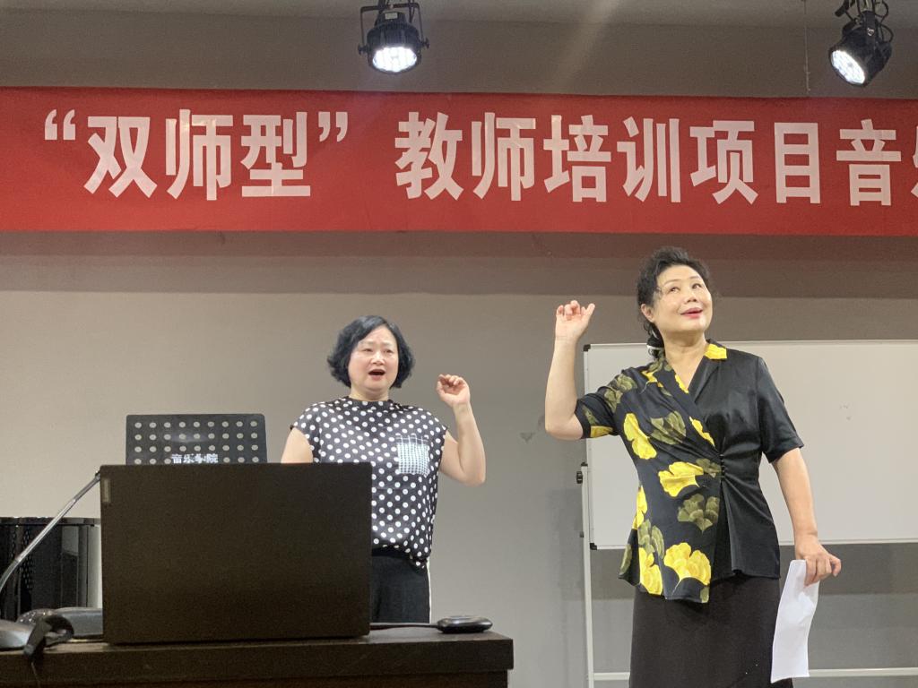 上午,韩梅教授在艺术楼八音讲堂为参训学员作了题为《基于“双师型”背景下的声乐教育观》的讲座。讲座中,韩梅从“双师型”教师的界定,“双师型”教师具备的能力等方面进行了详细的解释说明。她指出“双师型”教师既要具备理论教学的素质,也应具备实践教学的素质,既有良好的职业道德,教书育人,又具有进行职业指导等方面的素质和能力。她还根据音乐教师的特点,对“双师型”音乐教师进行了具体的解读。