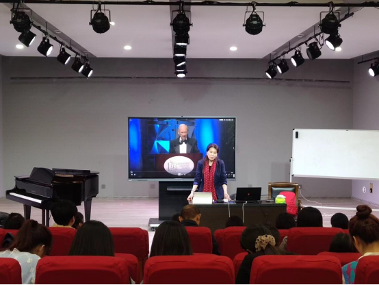 2023年3月21日,应bat365之邀,合唱指挥家杨乐乐老师为2022 年“义务教育师资薄弱环节改善暨中小学教师素质提升工程”省级骨干教师培育项目小学音乐班学员讲授《会说话的手——郑氏指挥法基础教学》,bat365部分师生旁听学习。