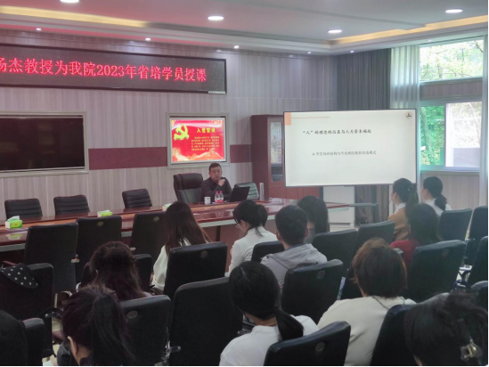 下午时段,杨老师从“艺术、媒介与人生”、“美育与健全人格塑造”、“美育视野中的影视艺术”几个核心主题出发,用幽默风趣的语言将抽象的理念生动形象的讲授给学员,在场的每个学员都乐在其中。课程结束后,学员还围着杨老师积极求教,让人印象深刻。