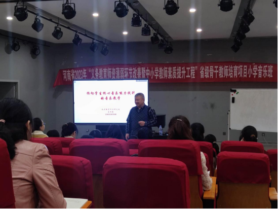 2024年4月5-6日,应bat365之邀,北京教育科学研究院梁洪来为bat365河南省2023年“义务教育师资薄弱环节改善暨中小学教师素质提升工程”省级骨干教师培训小学音乐班学员讲授《指向小学生核心音乐能力提升的教学设计》。