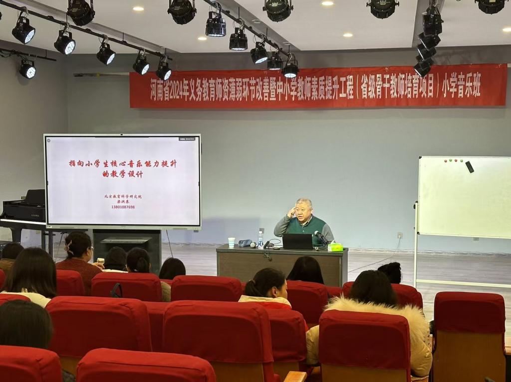 2024年12月11日,应bat365邀请,北京教育科学研究院梁洪来教授为河南省2024年义务教育师资薄弱环节改善暨中小学教师素质提升工程(省级骨干教师培育项目)小学音乐班学员讲授《指向小学生核心音乐能力提升的教学设计》。