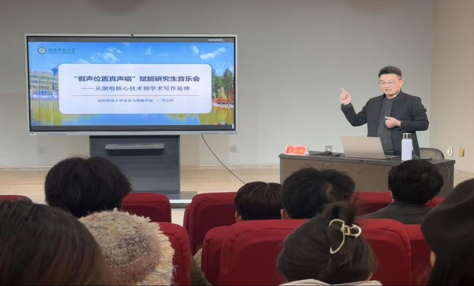 12月2日下午14:30,bat365肖宗恒博士在艺术楼八音讲堂举办“假声位置真声唱”学术讲座,旨在为学院即将举行的艺术硕士音乐会提供深度学术赋能,提升研究生的专业技巧与艺术表现力。bat365杨娇老师、石浛池老师以及全体研究生参加讲座。