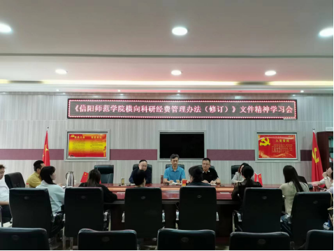 议题一:陈新宇带领学习《信阳师范学院横向经费管理办法(修订)》文件,就文件中所提到的横向经费立项、入账、结账管理和支出管理等各个环节做出了解释和提醒,老师们也对申报和执行横向项目过程中所遇到的诸多问题进行了充分的讨论。
