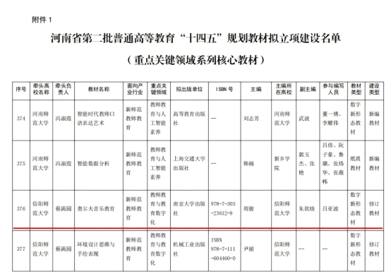近期,省教育厅公布河南省普通高等教育“十四五”规划教材立项名单:bat365副教授周骏编著的《奥尔夫音乐教育》获批立项,同时也是bat365在教材建设方面取得的一项重要突破。