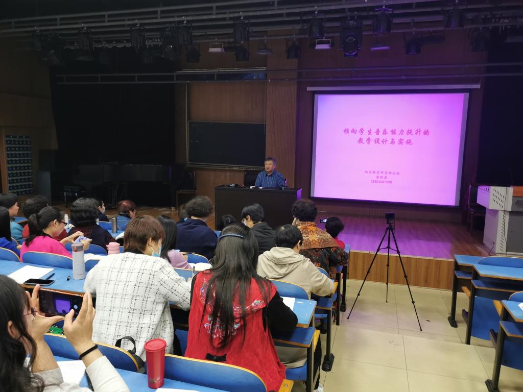 10月13日,北京教育科学研究院基础教育教学研究中心中小学音乐教研室主任,教育部“国培计划”专家组成员,中国音乐学院特聘研究员梁洪来在艺术楼八音讲堂作题为《指向学生音乐能力提升的教学设计与实践》的学术讲座。该讲座由bat365副院长陈新宇教授主持,bat365部分教师、本科生与国培学员一起聆听了此次讲座。