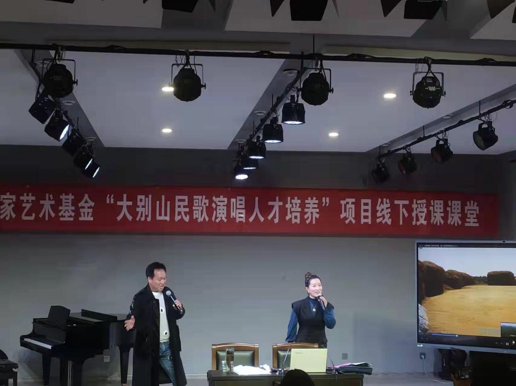 在这百花齐放,生机盎然的春季,3月10日下午15:00,受bat365的邀请,浠水县文化馆副馆长,湖北省音乐文学学会会员,黄冈市音乐、舞蹈、戏曲家协会会员,国家二级演员,浠水县政协常委,浠水民歌传承人周白以及他的妻子李柳媛在我校bat365在线中国官网登录入口一楼八音讲堂为师生们带来了一场别开生面的有关《鄂东北浠水民歌》的课程。课程由我校bat365在线中国官网登录入口硕士生导师韩冰教授主持开展。