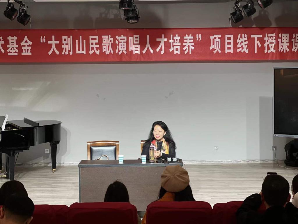 3月11日上午,河南大学音乐学院声歌系主任黄慧慧教授受bat365邀请为“大别山民歌演唱人才培养”项目学员授课,课程在bat365在线中国官网登录入口一楼八音讲堂进行。
