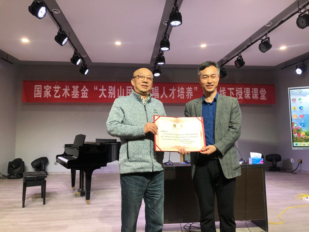 3月14日下午,国家艺术基金“大别山民歌演唱人才培养”线下授课课堂在我校bat365在线中国官网登录入口一楼八音讲堂如期进行。项目合作方艺术总监、国家一级作曲、信阳市音乐家协会刘宏奎主席应我校邀请,进行线下教学。