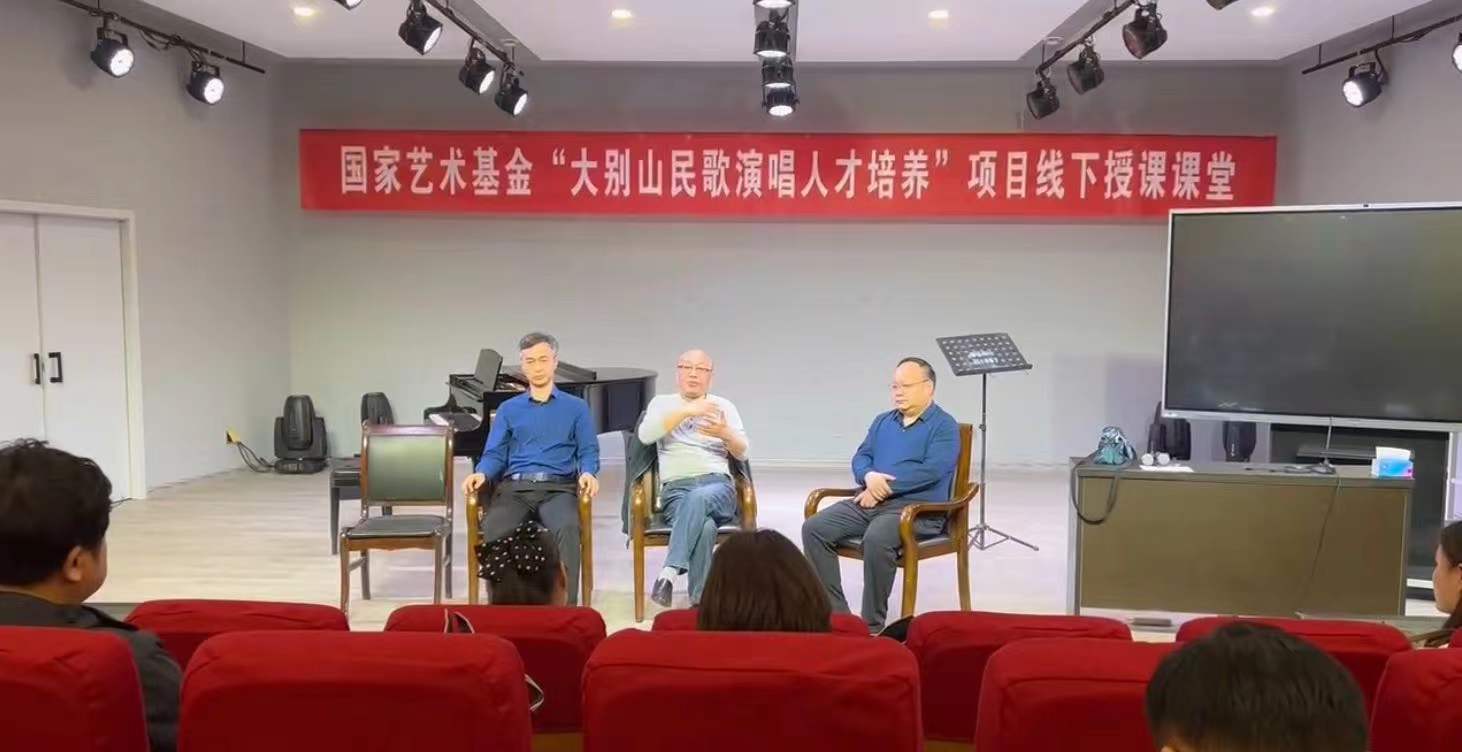 3月15日晚上,国家艺术基金“大别山民歌演唱人才培养”项目第二次研讨会在我校艺术楼107八音讲堂召开,出席会议的有合作方艺术总监刘宏奎主席,bat365在线中国官网登录入口陈新宇院长,任远副院长,项目主持人韩冰老师以及学院青年教师等。