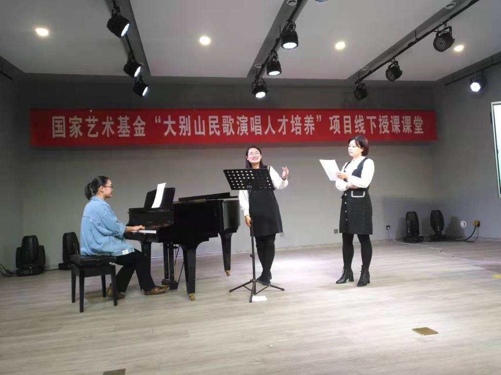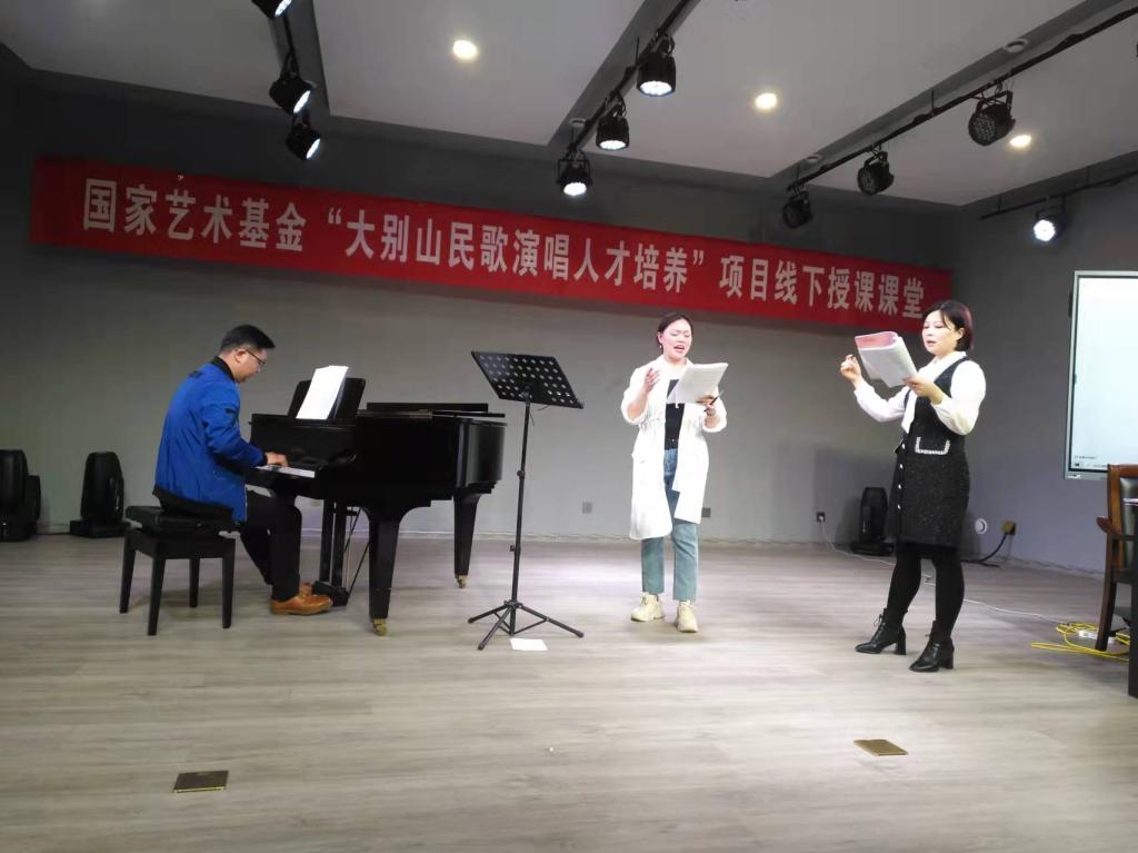 3月15日下午,国家艺术基金“大别山民歌演唱人才培养”线下授课课堂在我校如期进行。河南省著名女高音歌唱家陈静,受邀来到我校bat365在线中国官网登录入口八音讲堂,以《声乐舞台上的表演和演唱》为题进行线下授课。