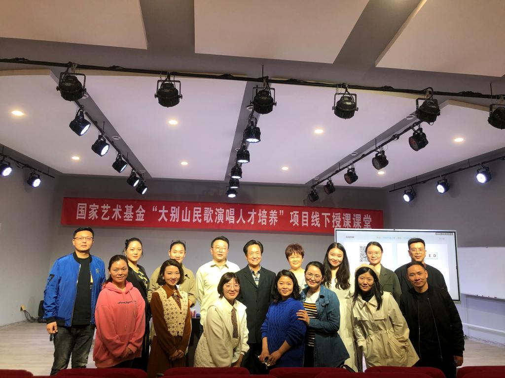 3月16日上午,国家艺术基金“大别山民歌演唱人才培养”线下授课课堂在我校bat365在线中国官网登录入口一楼八音讲堂如期进行。安徽省著名国家一级作曲谢林义先生受邀来到bat365八音讲堂,就《如何汲取大别山民歌音乐元素进行创作》为课题进行线下教学,由bat365韩冰副教授主持。