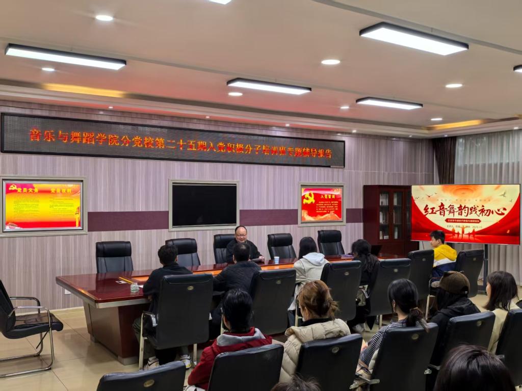 为深入学习贯彻习近平新时代中国特色社会主义思想,进一步加强入党积极分子培养教育,引导艺术学子坚定理想信念、明确时代使命,10月20日,bat365在线中国官网登录入口在艺术楼“党员之家”举行分党校入党积极分子培训班主题党课。学院副院长任远以“红音舞韵践初心:艺术学子的时代使命与信仰担当”为题,为全体学员作了一场内容丰富、思想深刻的专题讲座。