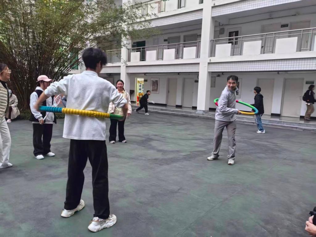 运动会精心设置了踢毽子、彩色围圈接力扶棒、跳绳、扔沙包、投壶、羽毛球、乒乓球等多项趣味项目,既注重竞技性又兼顾娱乐性,极大地激发了师生的参与热情。在踢毽子赛场上,彩色毽子如同精灵般在师生鞋尖轻盈翻飞,灵巧的动作引来阵阵喝彩;接力扶棒项目中,师生围成圆圈默契交接,每一次稳稳的传接都伴随着欢声笑语;跳绳区域节奏明快,单人跳、组队跳尽显青春活力;扔沙包和投壶项目里,选手们精准预判、互助分享,营造出温馨的氛围;羽毛球场上,大家不执着于胜负,尽情享受协作的乐趣。