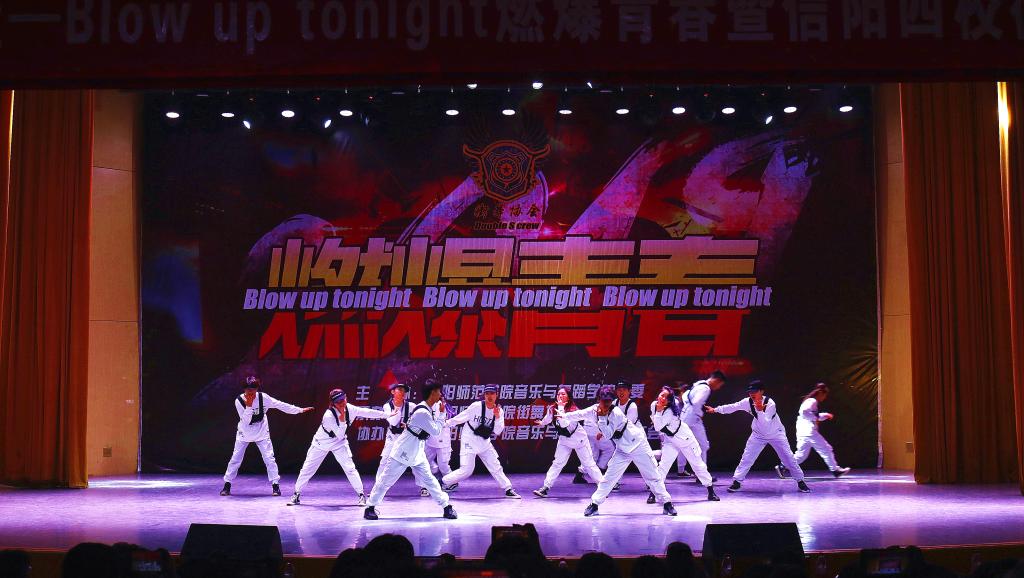 本次大赛由信阳师范学院、信阳职业技术学院、信阳农林学院、河南水利与环境职业学院四所高校组成,为现场观众呈现了街舞、鬼步舞、女团舞、爵士舞等形式多样、创意独特的舞蹈。