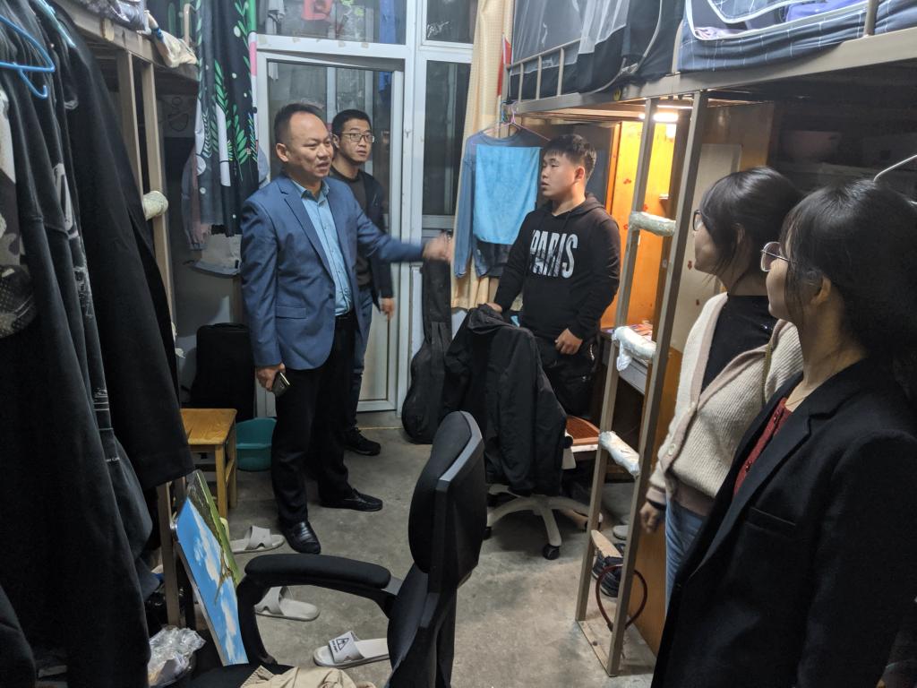 为加强学生宿舍安全管理,进一步了解bat365学生的学习生活情况,10月4日,党委副书记郭振带领全体辅导员班主任一同走访了学生宿舍。