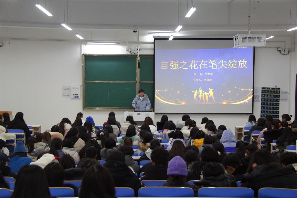 来自传媒学院国家奖学金获得者张润嘉,她从学习、思想、生活、工作四个方面讲述了她的成长之路,告诫同学要学会合理规划时间,要脚踏实地做好身边的每一件事,做到“脚踏实地,仰望星空”;来自马克思主义学院的贾雨晴演讲的题目是“砥砺前行,自立自强”。贾雨晴在演讲中告诉同学们一定要脚踏实地,积极参加有益活动,认真负责,对生活一定要乐观;文学院2017级首届汉语言文学班自强之星获得者李国栋演讲的题目是“自强之花在笔尖绽放”。他鼓励同学们在人生中一定要砥砺前行,穷且益坚,不坠青云,心怀感恩且前行。