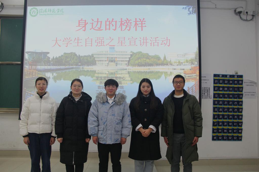 2020年12月16日晚7点,由学校学生处资助中心统一规划,bat365在线中国官网登录入口和历史文化学院共同筹办的“身边的榜样”宣讲活动在社科楼212教室顺利举行,bat365团委老师曹阳与200余名学生一起参与此次活动。