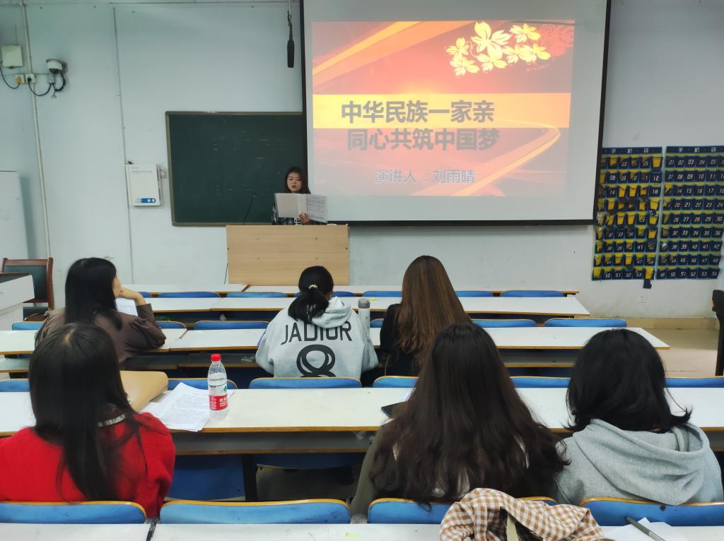 为了增进学院各民族学生之间的友谊,提高民族凝聚力、向心力,促进学院谐发展。10月15日,由学院团委主办的 “民族团结一家亲,同心共筑中国梦”主题演讲比赛在教九103教室顺利举行。比赛伊始,团委张焕然老师做动员讲话,点明举办此次活动的意义所在,同时阐述民族团结的重要性。11位来自各个年级和班级的优秀选手参赛,每位选手都结合自身感受,以新颖的角度解读“民族团结”与“中国梦”的内涵及其联系,娓娓道来,极富感染力。