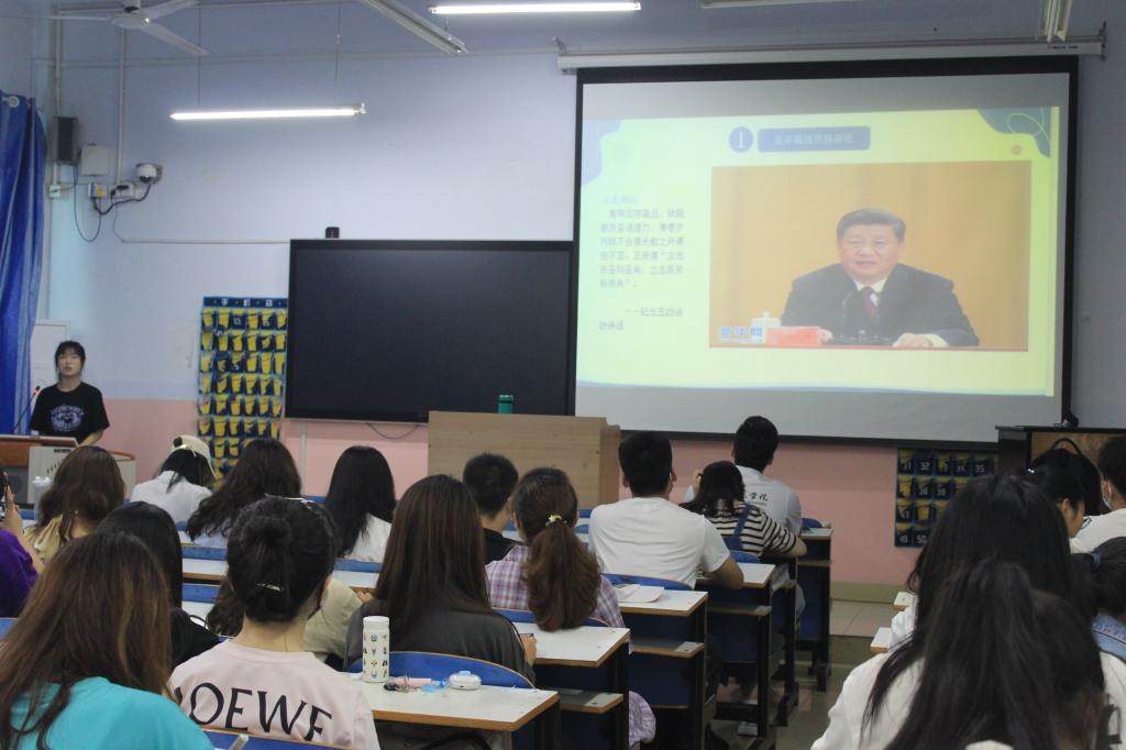 动开始,宣讲人依次上台宣讲,结合自己精心制作的ppt,以己为例、以身作则,从思想、生活、学习、工作等各个方面展开激情演讲。莫铭非以温柔的话语分享自己参加军事技能竞赛、茶艺技能竞赛、全国旅游院校服务技能竞赛和投身志愿服务等经历,展现了自己精彩的大学生活,鼓励同学们在未来学习和生活中坚定理想信念,执着追求梦想,勇担时代使命,踏梦前行。