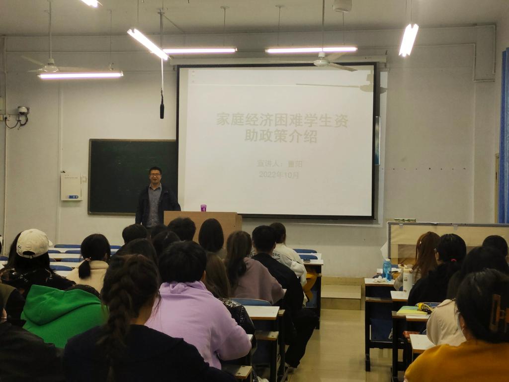 10月20日、10月25日,bat365在教九楼103教室、203教室面向2022级新生召开资助政策宣讲会,宣讲会由bat365资助专员曹阳老师主讲,2022级全体新生参会。