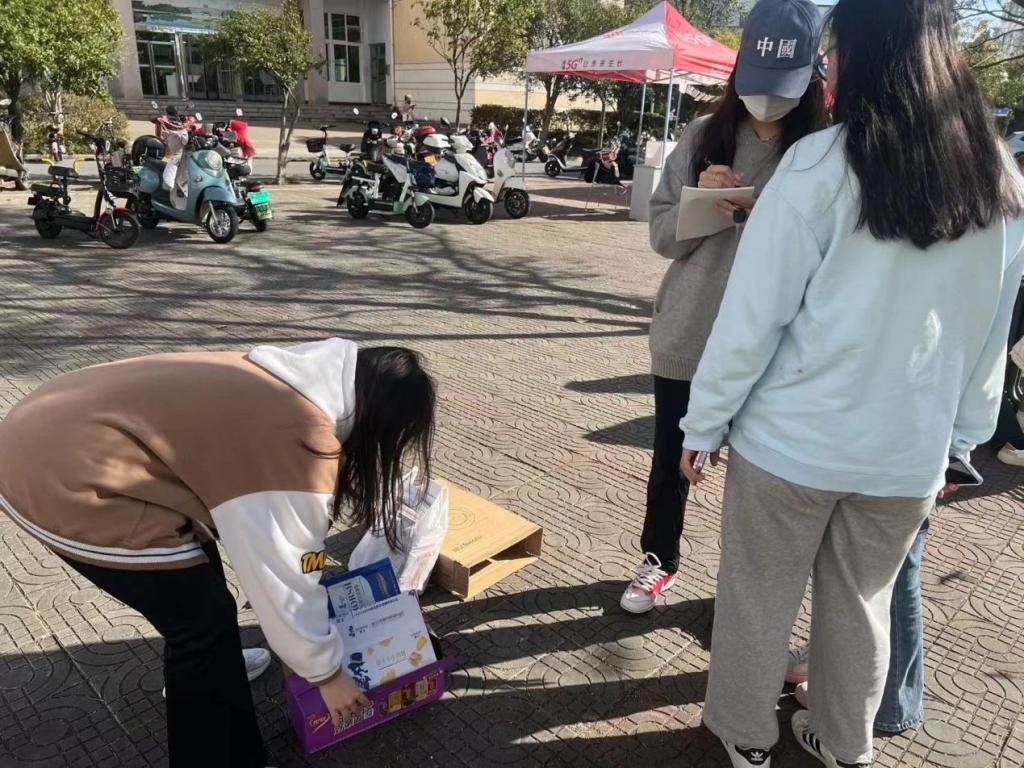为了构建文明、和谐、宣居的校园环境,提高校园学生素质和文明程度,让文明成为每个人的习惯。bat365学生会学生权益部11月7日于八餐广场开展了“真善无言,箱传温暖”活动。