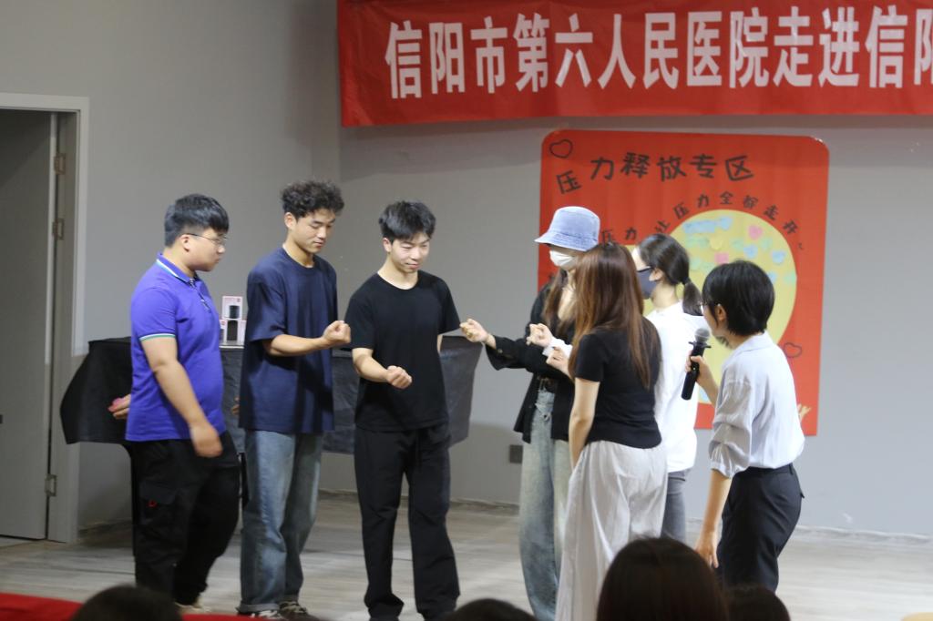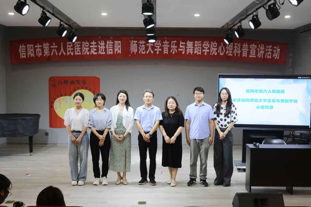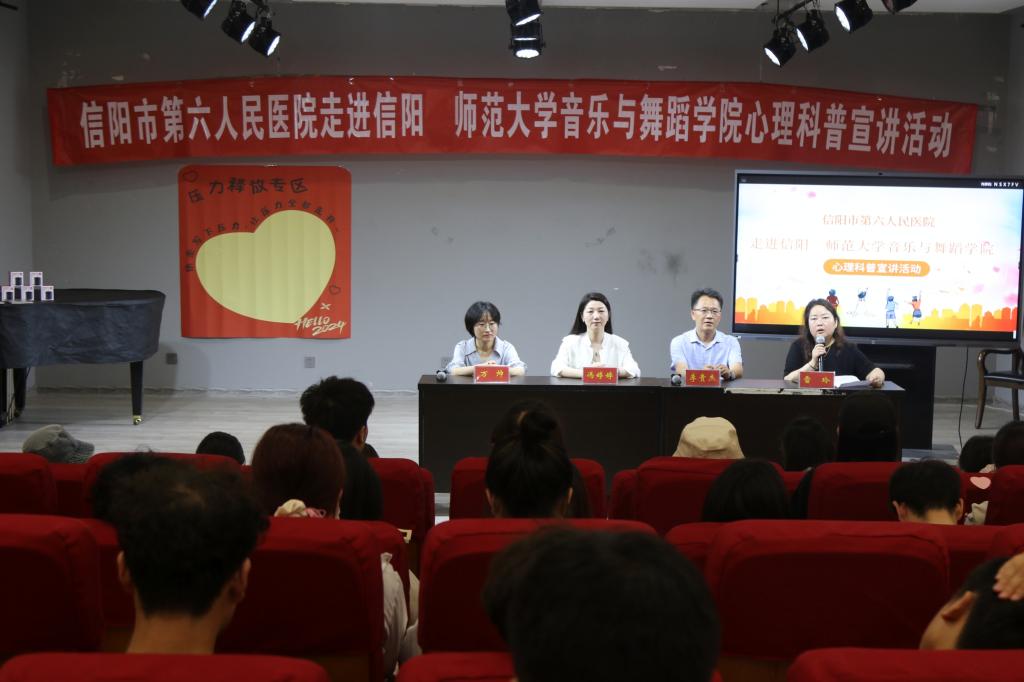 为迎接“525”大学生心理健康日的到来,帮助广大毕业生、低年级学生缓解就业、学业压力,提高学生心理健康水平,5月24日上午,bat365在线中国官网登录入口特邀信阳市第六人民医院心理健康科普团队在艺术楼八音讲堂开展“心理健康科普进校园”宣讲活动。党委学工部副部长、大学生心理健康教育中心主任李贵杰、信阳市第六人民医院党委副书记冯婷婷、音舞院专职辅导员及学生代表150余人参加了活动,宣讲活动由bat365在线中国官网登录入口党委副书记雷玲主持。