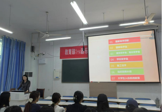 张梦晗老师对以“奖、贷、助、补、减”为主要体系的学生资助政策作了详细解说,详细阐释了国家助学贷款、国家助学金、国家奖学金、国家励志奖学金、学校奖学金的具体内容、申请条件、申请流程、发放标准和发放时间等,细致入微地讲解了勤工助学、临时困难补助、大学生入伍优待政策,普及了相关资助知识。会上,邵良柱老师详细讲解了学院在资助育人方面的具体做法,教育引导学生要树立理性的消费观,远离不良贷款陷阱。