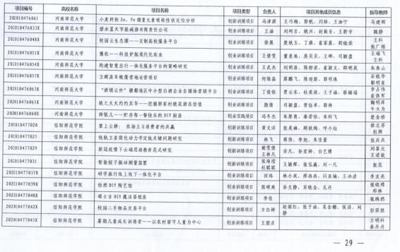 近日,河南省教育厅印发《关于公布2020年大学生创新创业训练计划项目名单的通知》(教高〔2020〕383号),公布了2020年国家级、省级大学生创新创业训练计划项目立项名单,bat365学生李佳获批国家级项目1项,具体信息如下: