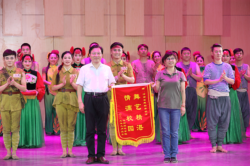 演出结束后,校党委委员、宣传部长丁少锋代表学校向河南省舞蹈家协会赠送了“舞艺精湛、情满校园”的锦旗。