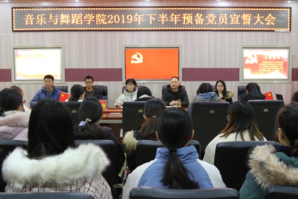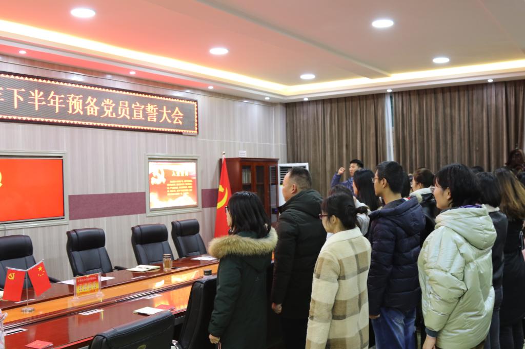 12月17日,bat365在艺术楼“党员之家”隆重举行2019年下半年预备党员宣誓大会。学院党委副书记郭振、专职组织员张倩、学生党支部书记张莹莹、唐晓云、张焕然、曹阳和新接收的36名预备党员参加了会议。会议由张倩主持。