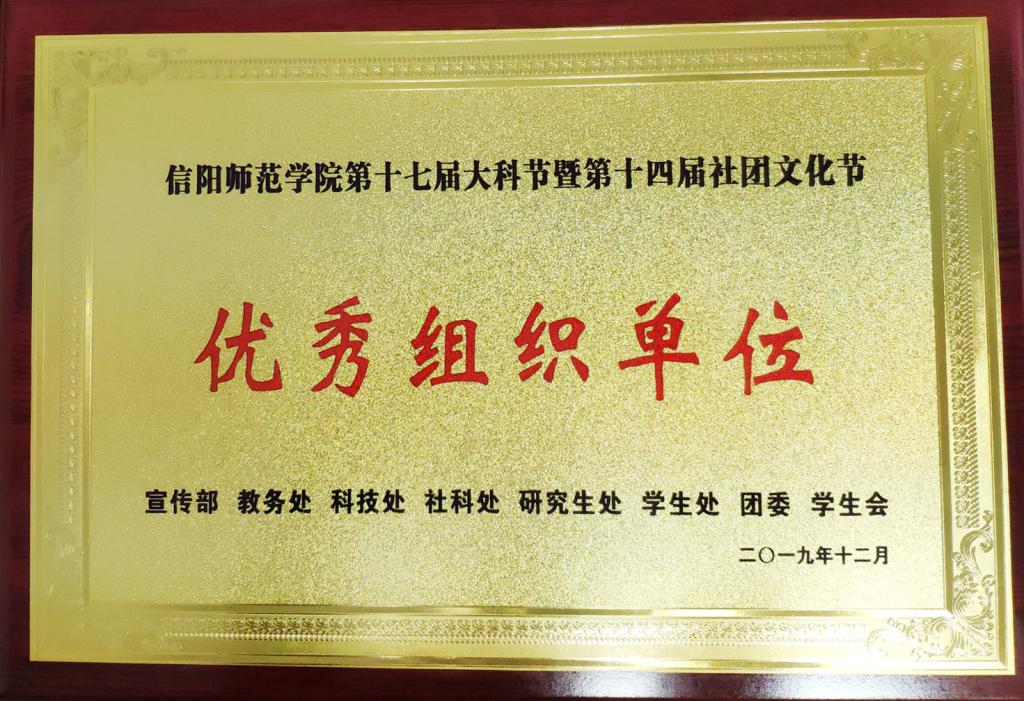 12月30日,我校第十七届大学生科技文化艺术节暨第十四届社团文化节颁奖典礼暨2020年新年晚会在理科楼报告厅举办。校党委副书记郜火星、副校长余本海应邀出席,各相关职能部门负责同志、各社团指导教师与五百余名师生一起参加了颁奖仪式。bat365社团工作因组织得力、效果显著,荣获第十七届大学生科技文化艺术节暨第十四届社团文化节“优秀组织单位”。