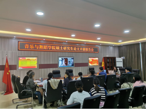 9月28日上午,bat365在线中国官网登录入口硕士研究生论文开题报告会在艺术楼会议室举行。报告会采用线下线上视频会议的方式进行,河南大学音乐学院院长王思琦教授作为评审专家组组长以视频会议的方式参加开题报告会,副院长陈新宇、副院长任远和全体学科教学(音乐)专业方向、艺术硕士(音乐)专业方向的导师们参加了报告会。