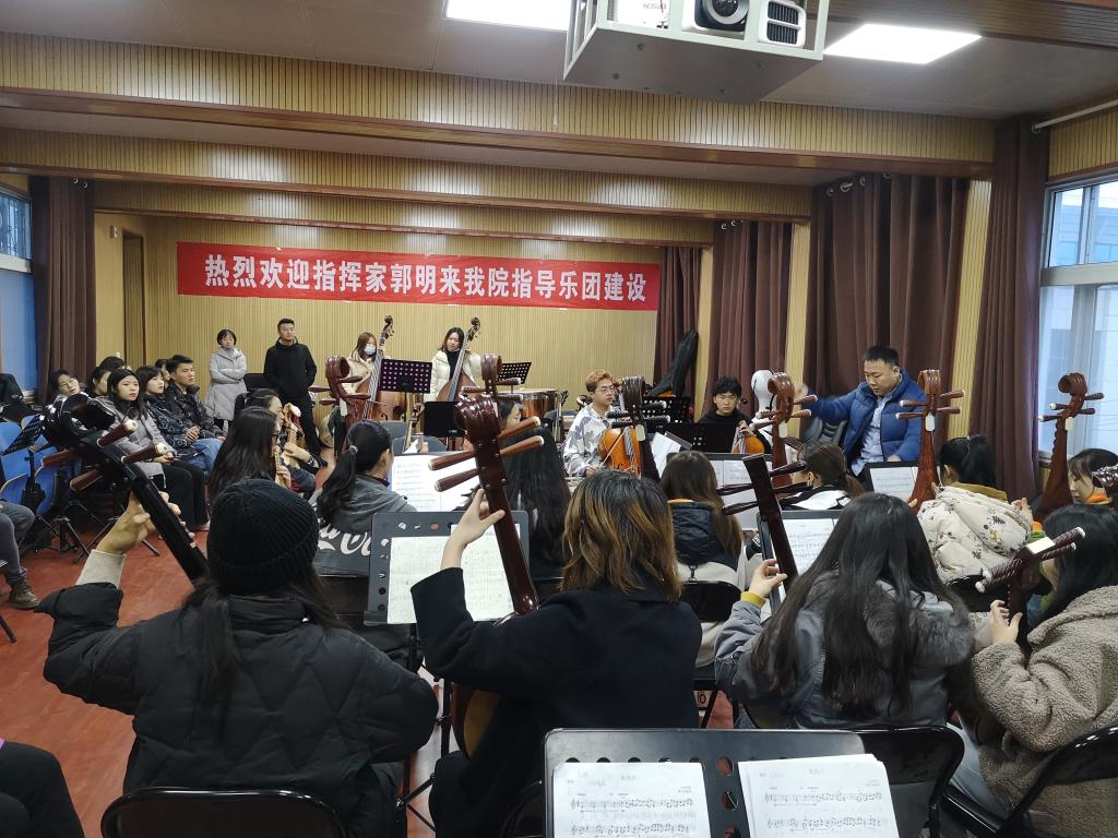 12月7日,山西省歌舞剧院民族乐团郭明指挥、河南歌舞演艺集团副总经理杜宏亚先生及其河南省民族乐团的部分声部首席老师莅临本院,指导乐团排练工作。