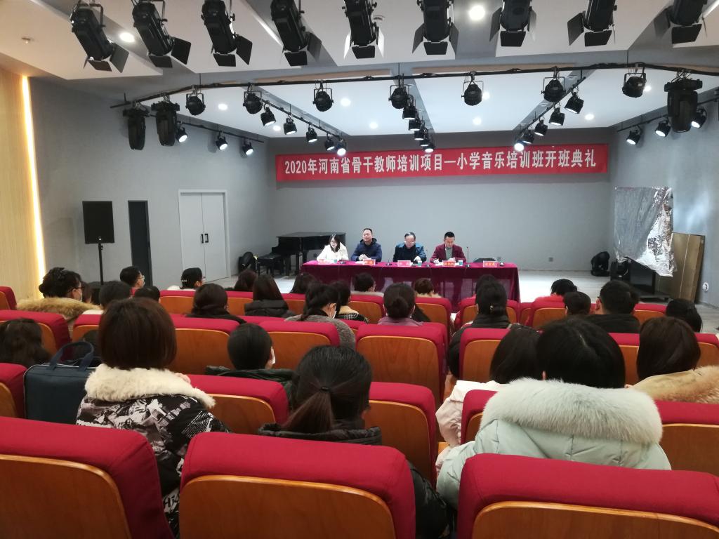 1月3日上午,2020年省级骨干教师培育项目小学音乐教育培训班开班典礼在艺术楼八音讲堂举行。bat365在线中国官网登录入口副院长任远,党委副书记郭振,专业主任梁凯枫,生活班主任张莹莹出席典礼,来自全省28个市、县基础教育一线的43名学员参加典礼。开班典礼由张莹莹主持。