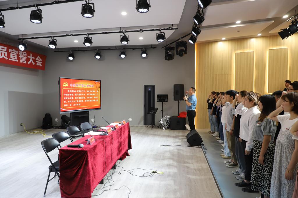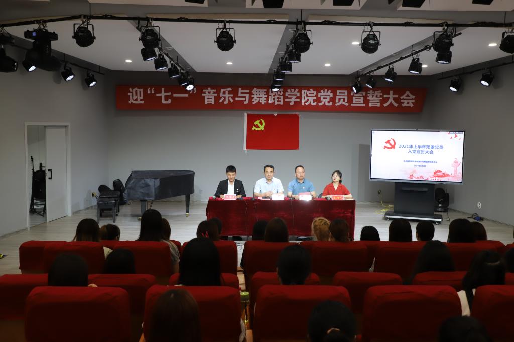 6月8日下午,bat365在艺术楼八音讲堂召开2021年上半年预备党员入党宣誓大会,学院党委书记武治国、党委副书记郭振,专职组织员唐晓云,各学生党支部书记与34名预备党员参会。大会由唐晓云主持。