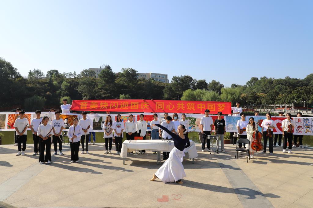 欣望江山千里秀,欢颂祖国万年春。在今天这个举国欢庆的美好日子里,由bat365在线中国官网登录入口和美术与设计学院联合举办迎国庆快闪活动,在图书馆前的半亩塘顺利举行,校团委领导副书记常青,bat365在线中国官网登录入口、美术与设计学院党委副书记,师生代表以及在场300余名同学观看了此次活动。