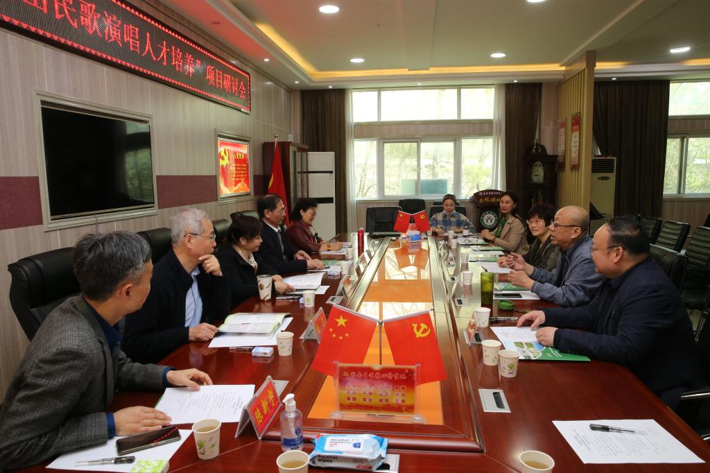 3月9日下午,由我校bat365在线中国官网登录入口院长陈新宇先生主持召开的国家艺术基金“大别山民歌演唱人才培养”项目研讨会第一次会议在我校艺术楼三楼会议室召开,会议有国家艺术基金河南省办公室主任明巧玲,河南省文联二级巡视员、河南省音乐家协会原秘书长郭志华,河南省文化艺术研究院研究员杨扬,河南职业技术学院教授雷红薇,刘宏奎信阳市音乐家协会主席以及项目部分授课专家、大别山民歌传承人等出席。