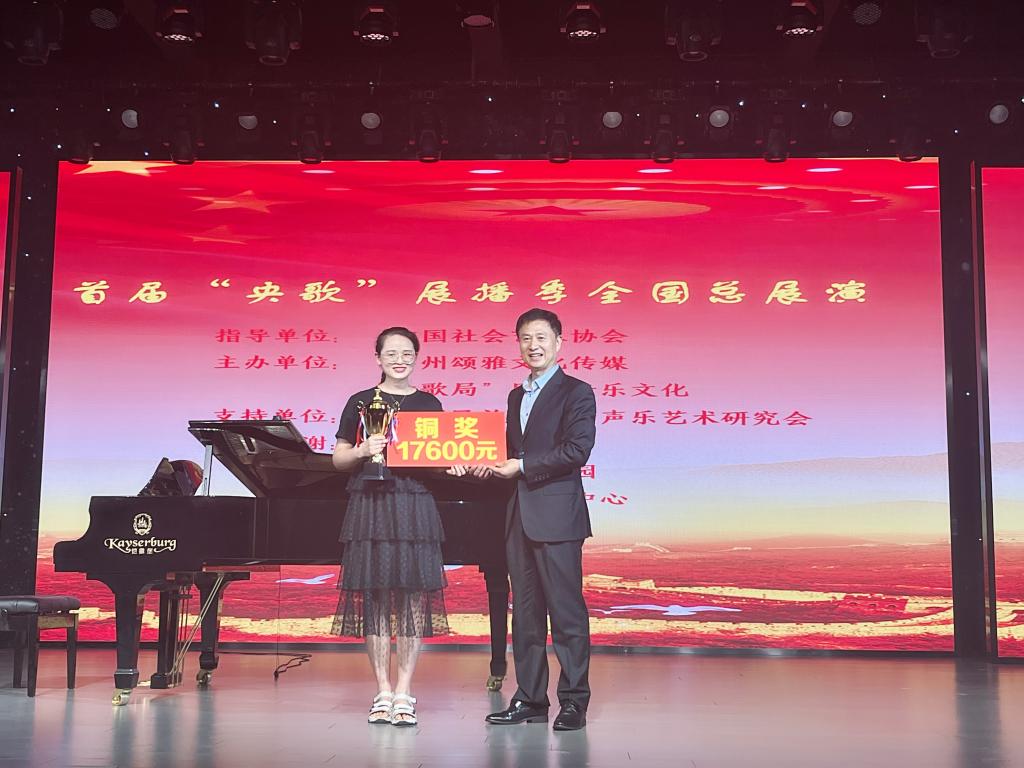 此次“央歌”赛事共设置金银铜奖各一名及最佳展播奖等若干名,从2021年开始选拔,历经全网视频海选、观众投票复赛、线下展演决赛等环节,吸引了来自两岸三地的数百位声乐领域的专业选手齐聚广州,在业内顶尖专家评委见证下公平比武。经过两天的激烈角逐,bat365教师郭楠楠凭借扎实的专业实力和精彩的现场表现,以95.89的优异成绩力压群雄,斩获首届“央歌”全国总展演铜奖。