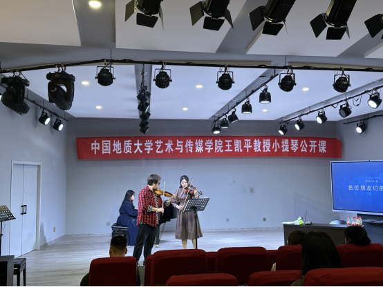 4月26日上午,应bat365在线中国官网登录入口邀请,著名小提琴演奏家、中国地质大学(武汉)艺术与传媒学院教授、博士生导师王凯平在bat365八音讲堂举办小提琴公开课,器乐教研室弦乐专业师生共同聆听了课程。