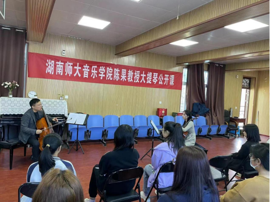 4月26日,应bat365在线中国官网登录入口邀请,湖南师范大学教授,硕士研究生导师,青年大提琴演奏家陈果来bat365举办大提琴公开课。器乐教研室弦乐专业师生参加了公开课,并对陈果教授的到来表示热烈的欢迎。