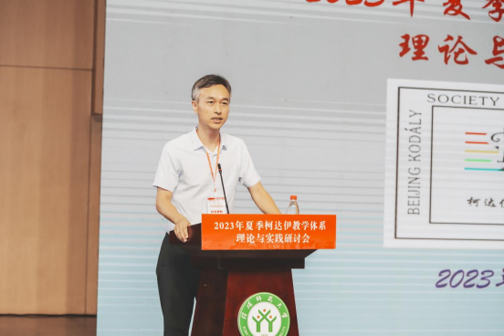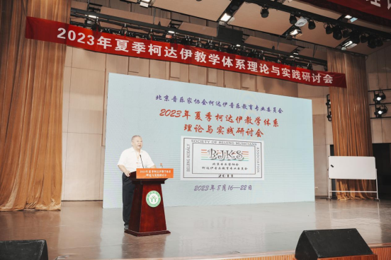 开幕致辞过后,北京音乐家协会柯达伊音乐教育专业委员会常务理事崔健为参会教师献上专题讲座《柯达伊教学体系概论与柯达伊作品介绍》。