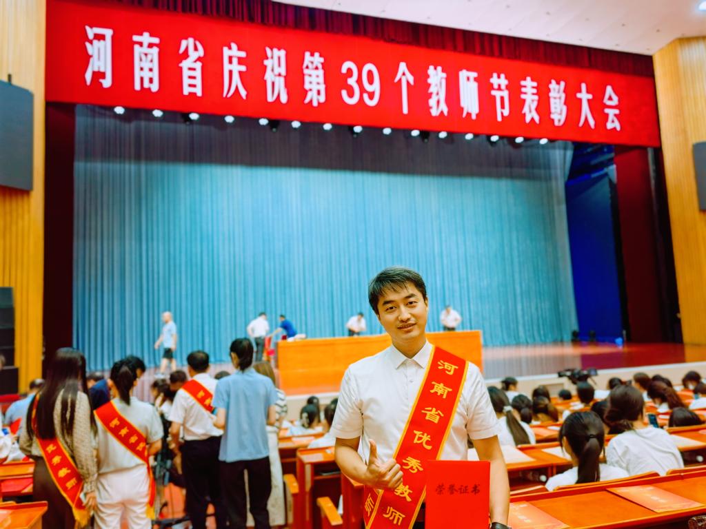 尊师重教,赓续初心。近日,bat365教师周骏博士经学院推荐、学校选拔、河南省教育厅差额评选,荣获“河南省优秀教师”称号,并作为全省优秀教师代表参加了河南省庆祝第39个教师节表彰大会暨首届河南省教书育人楷模发布仪式。