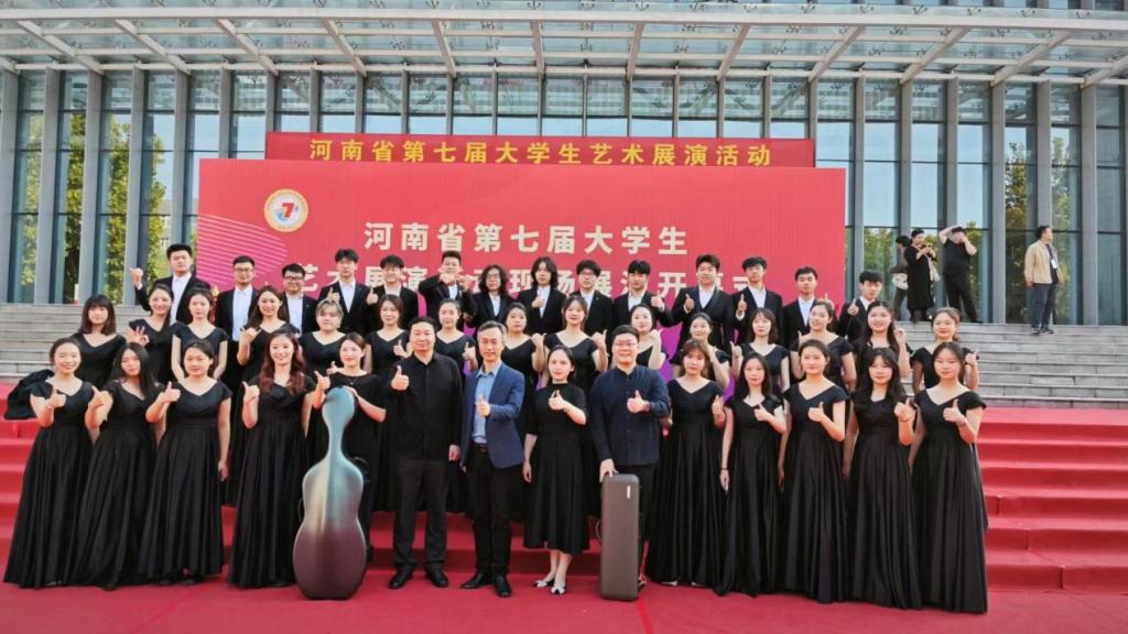 10月26日,由河南省教育厅主办、郑州师范学院承办的河南省第七届大学生艺术展演活动在郑州师范学院开幕,bat365舞蹈教研室由刘小雷、冯燕、李梦婷老师原创的舞蹈作品《桂花飘香》,声乐教研室由张波洋老师担任指挥,王霖、刘金定、段新惠老师担任伴奏的合唱作品《莫尼山》,器乐教研室由闫怡君老师指导的古筝重奏《夜深沉》成功入围并参加全省展演。
