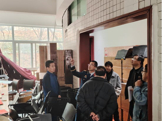 两位消防专家对学院的艺术楼、琴房楼等实训场地以及办公场所进行了消防安全隐患自查,重点检查了灭火器、消防栓等消防设施设备是否完好有效;疏散通道、安全出口是否畅通无阻,有无杂物堆积;电气线路是否存在老化、私拉乱接等安全隐患,并对老师及学生消防栓的正确使用进行培训。