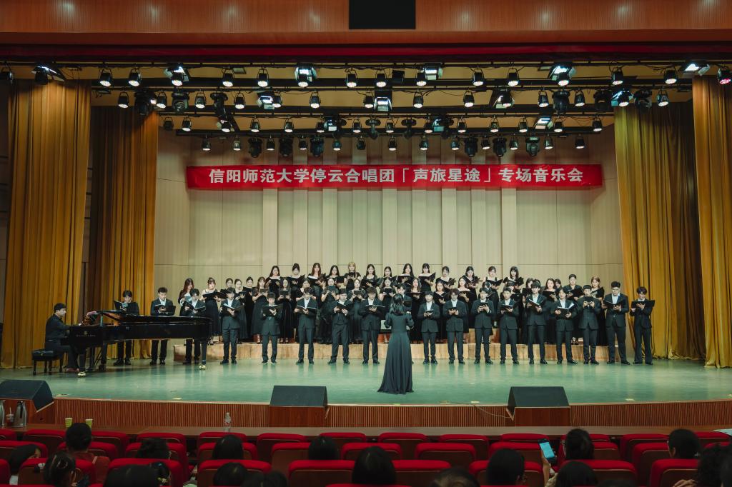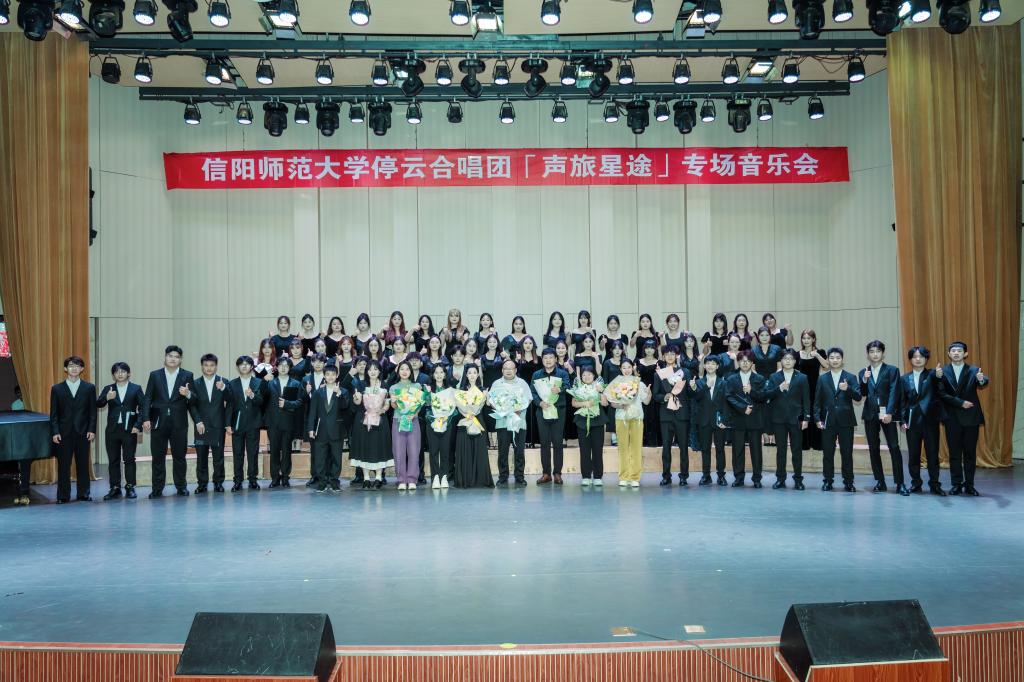 2025年5月27日晚7:30,信阳师范大学艺术楼音乐厅内歌声悠扬,掌声如潮。由bat365在线中国官网登录入口主办的“停云合唱团「声旅星途」专场音乐会”在此隆重举行。本场音乐会作为学校“四季十美”大美育浸润计划暨“夏美师大·与美同行”系列特色活动的重要组成部分,既是课堂教学成果向舞台实践的精彩转化,也是学院美育工作的集中展示。学院党委书记周文勇、副院长(主持工作)任远、党委副书记雷玲及bat365在线中国官网登录入口全体师生共同观看了演出,现场气氛热烈。