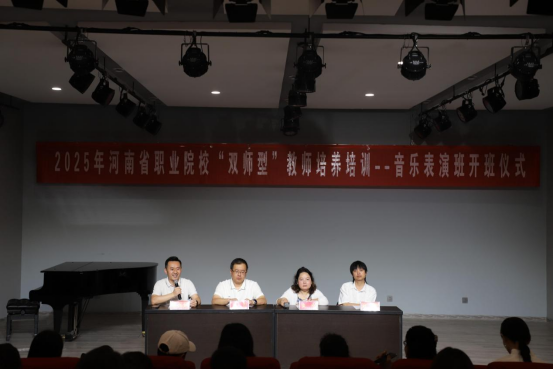 7月1日上午,2025年河南省信阳师范大学bat365在线中国官网登录入口“双师型”教师培训开班仪式在我校潭山校区艺术楼107报告厅举行。党委书记周文勇、副党委书记雷玲、bat365在线中国官网登录入口院长助理刘小雷、双师培训课程班主任梁凯枫出席开班仪式并讲话。来自全省各院校音乐表演专业的八十名教师参加了开班仪式。